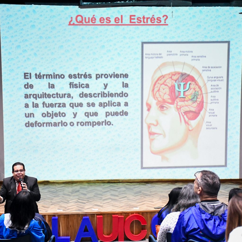 Durante su intervención, el Dr. Aldana fue enfático al señalar que el estrés no es exclusivamente negativo, sino su persistencia: “El estrés como tal no es malo, lo que es malo es prolongarlo por mucho tiempo”.